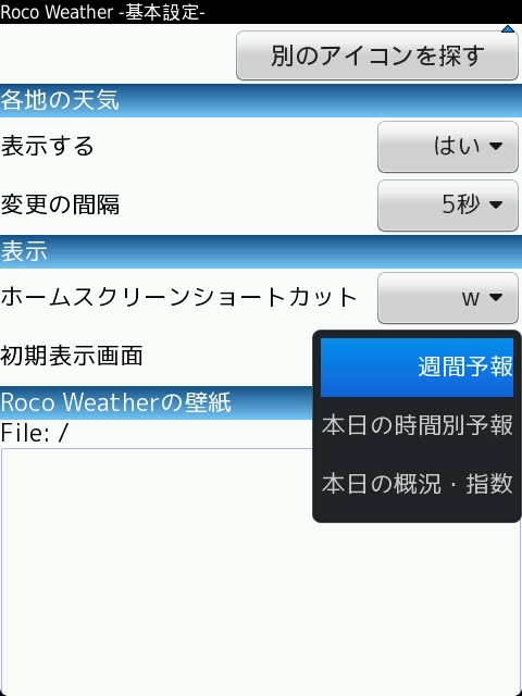 私は今、BlackBerry Bold 9900 と BlackBerry touch 9810でUGさん作Roco Weatherを使っています。