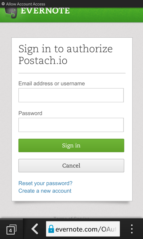まずはPostach.ioのサイトに行ってEvernoteのアカウントと連携。