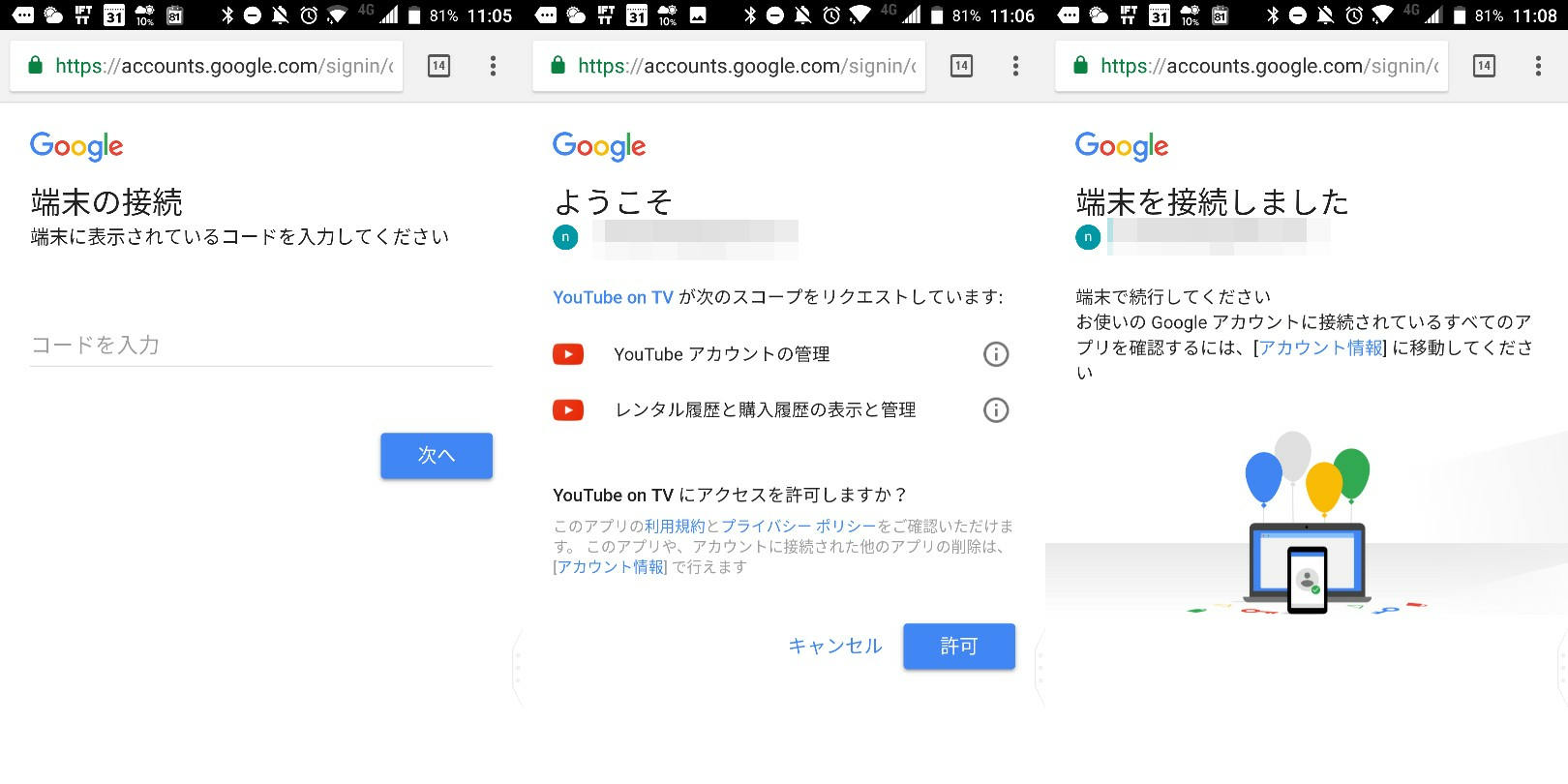 FireTVStickにはGoogleのアカウントでログインしてコードを入れると書いていましたが、実際はコードを入れてからアカウントでログインします。