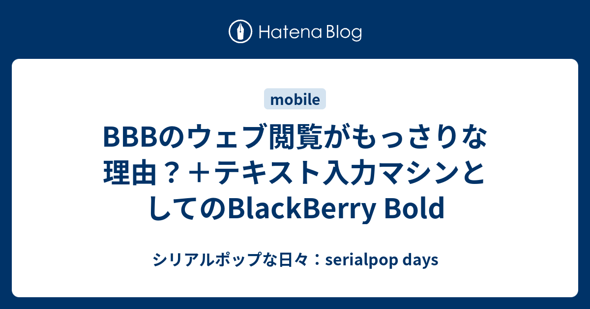 BBBのウェブ閲覧がもっさりな理由?+テキスト入力マシンとしてのBlackBerry Bold - シリアルポップな日々:serialpop days