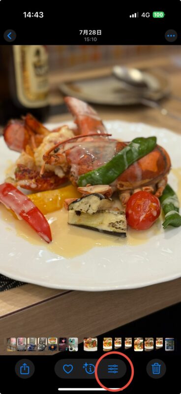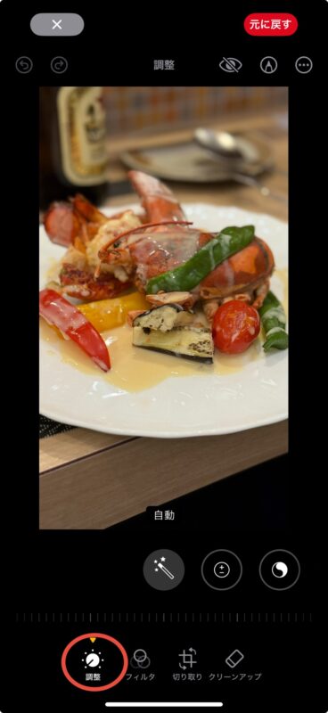そういう時に「写真」の下のイコライザーみたいなアイコンをタッチして。