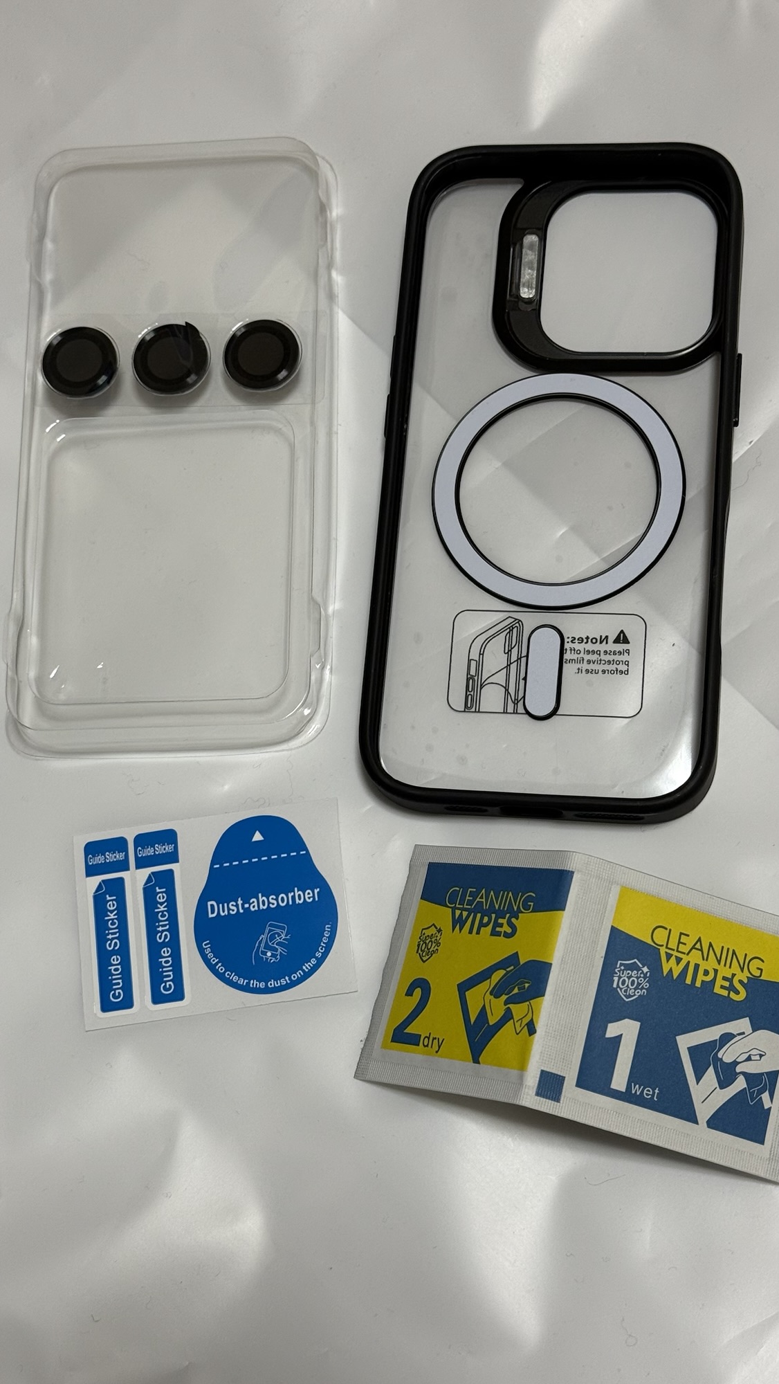 ケースとカメラ部分の保護、あと謎に液晶保護シート用と思しきクリーナーやシールが同梱されています。